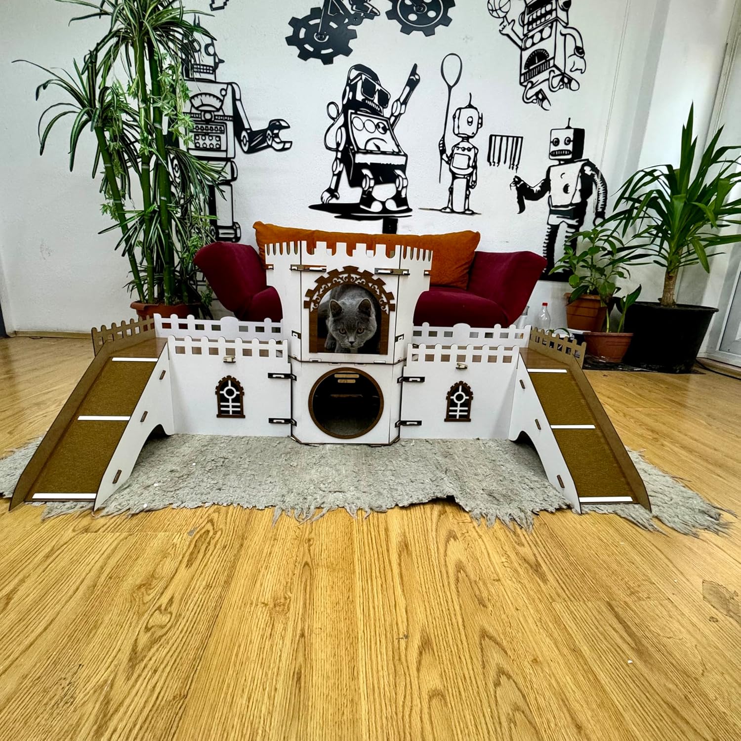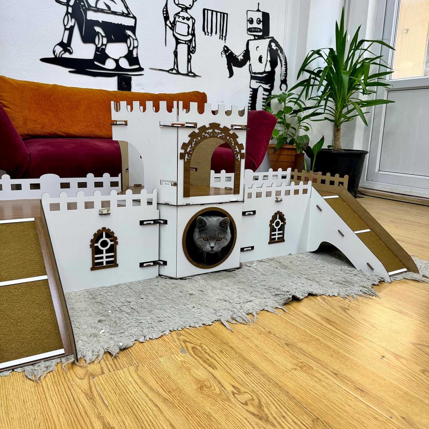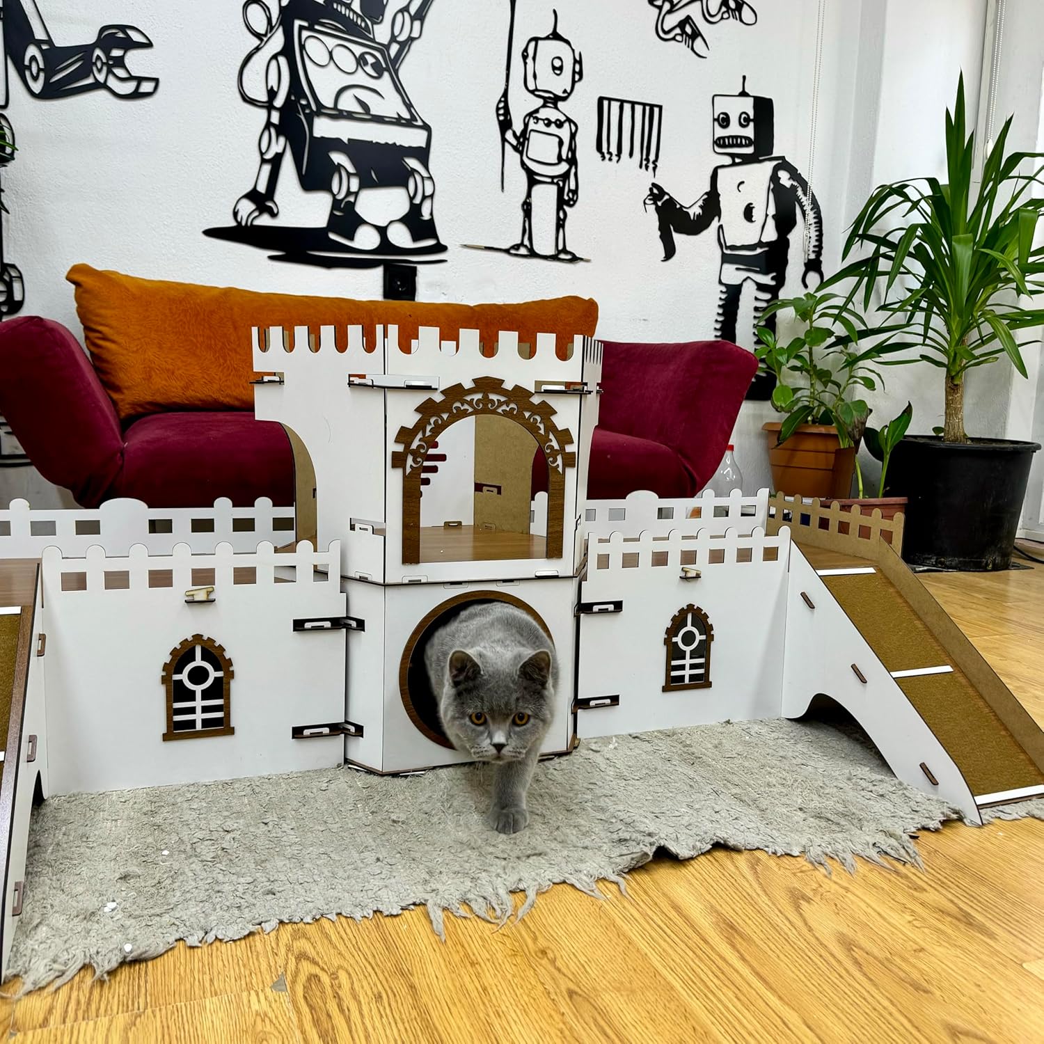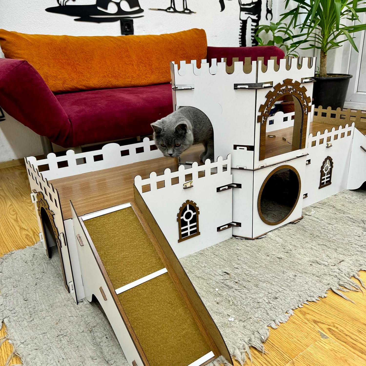 - 🐱 Katzenhaus im Schloss-Design: Einzigartiges, mehrstöckiges Design inspiriert von historischen Burgen – ein Blickfang in jedem Wohnzimmer!